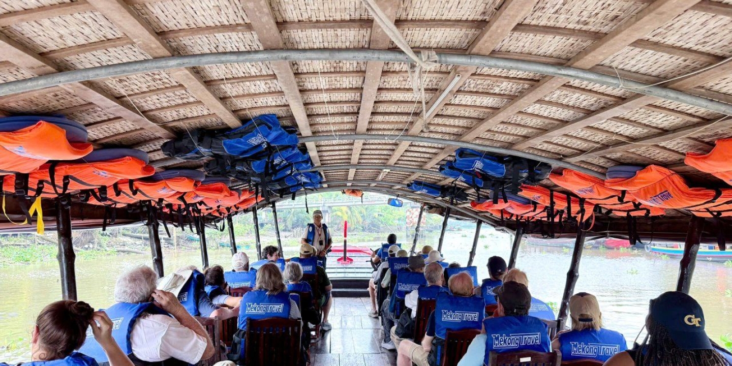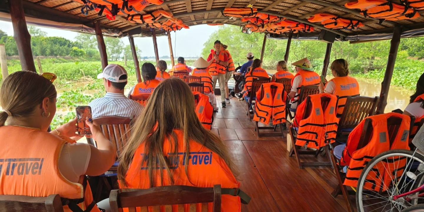 Mekong Travel’s tourist boat fleet currently consists of 36 vessels, each with a maximum capacity of up to 49 passengers. All boats are fully licensed, legally compliant, and certified for safety inspections, ensuring peace of mind for travelers while cruising through the waterways of the Mekong Delta. With boat operators having at least 5 years of experience, Mekong Travel builds absolute trust and confidence for visitors throughout their journey. In addition, each boat undergoes strict safety checks, including life jackets and essential equipment such as speakers, microphones, radar systems, and black boxes. The boats are crafted from starwood, built by the skilled hands of an experienced carpentry workshop on An Bình Islet, combining durability with traditional craftsmanship. Mekong Travel boats are also fully equipped with onboard restrooms, washbasins, seats, and hammocks, allowing guests to relax and fully enjoy the experience. Travelers can even enjoy lunch on board, savoring authentic Mekong Delta cuisine without any concerns about personal comfort.